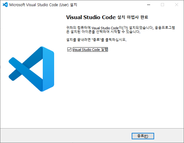 6. 정상적으로 설치가 완료되면 종료버튼을 클릭한다.