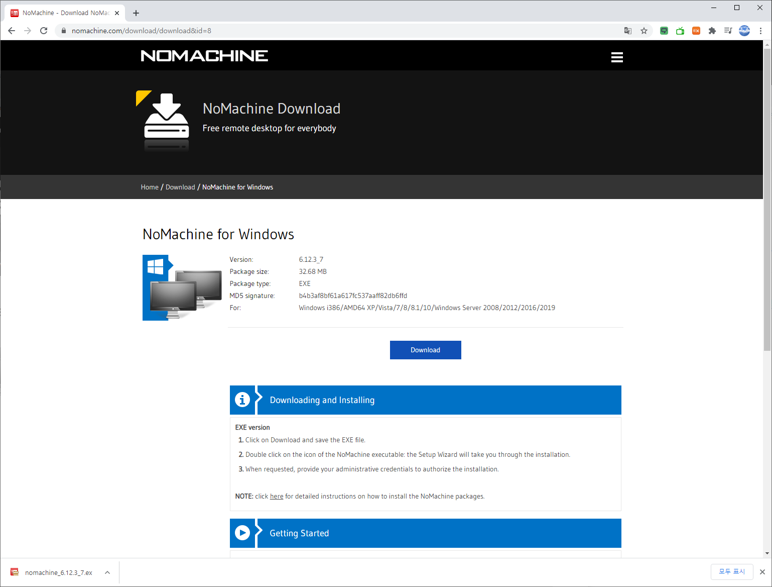 1. NoMachine Download 사이트에 접속하여 윈도우 설치 프로그램을 다운로드합니다.
