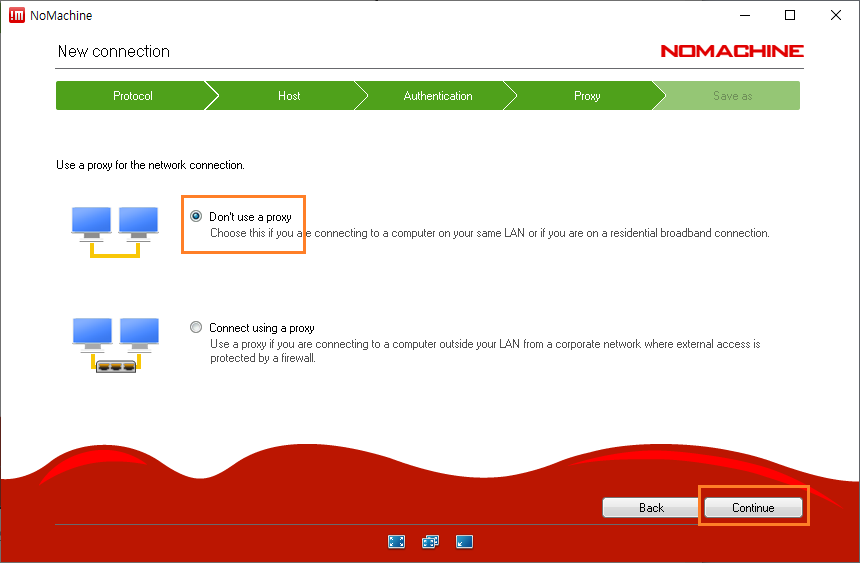 22. 프락시는 사용하지 않음을 선택합니다. Continue 버튼을 클릭합니다.