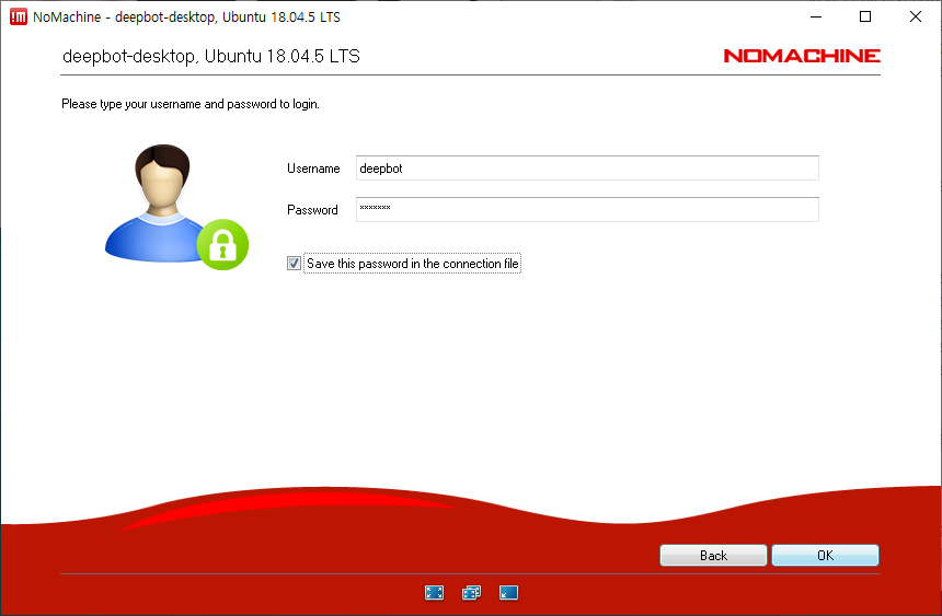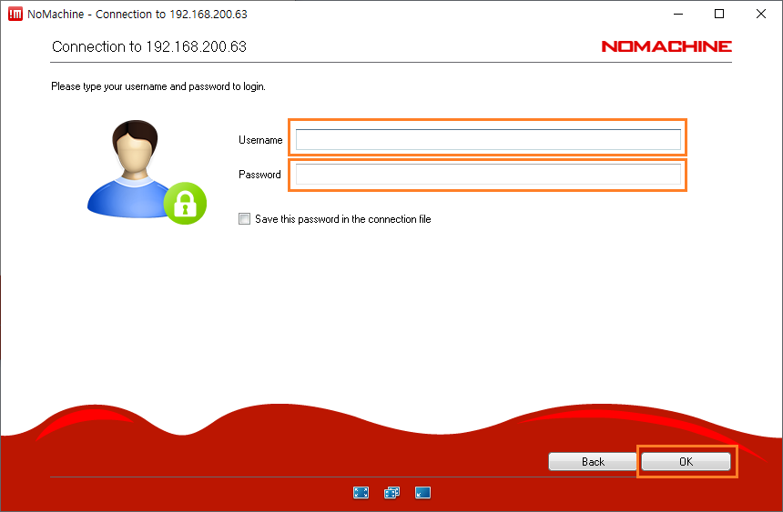 25. 사용자 이름과 비밀번호를 입력하는 창이 출력됩니다. 여기에 정의한 정보를 입력하고 OK 버튼을 클릭하면 원격 컴퓨터에 연결됩니다.