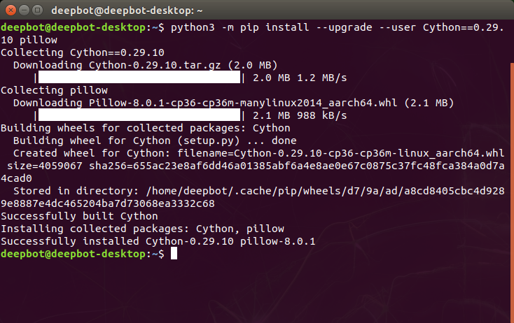python3 -m pip install --upgrade --user Cython==0.29.10 pillow