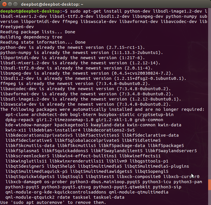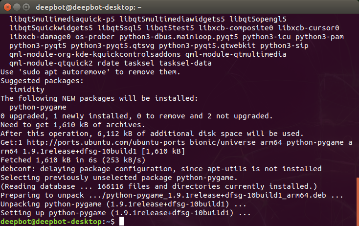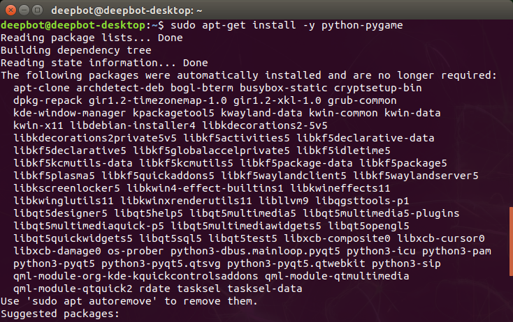 sudo apt-get install -y python-pygame