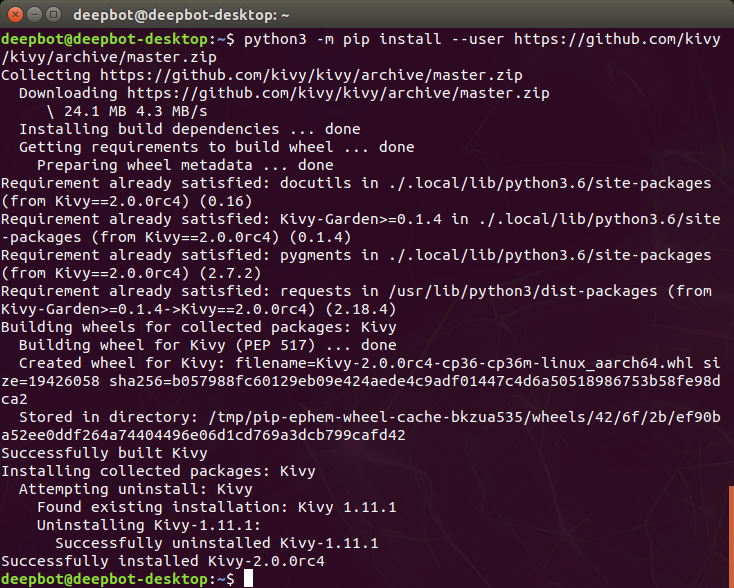 python3 -m pip install --user https://github.com/kivy/kivy/archive/master.zip