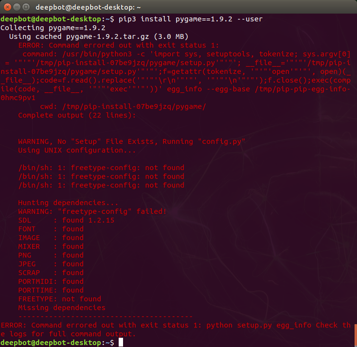 pip3 install pygame==1.9.2 --user