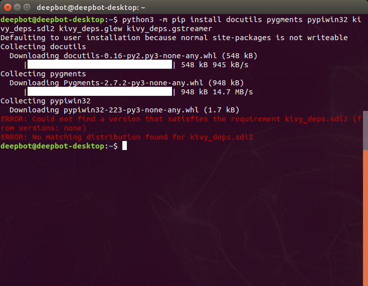 python3 -m pip install docutils pygments pypiwin32 kivy_deps.sdl2 kivy_deps.glew kivy_deps.gstreamer