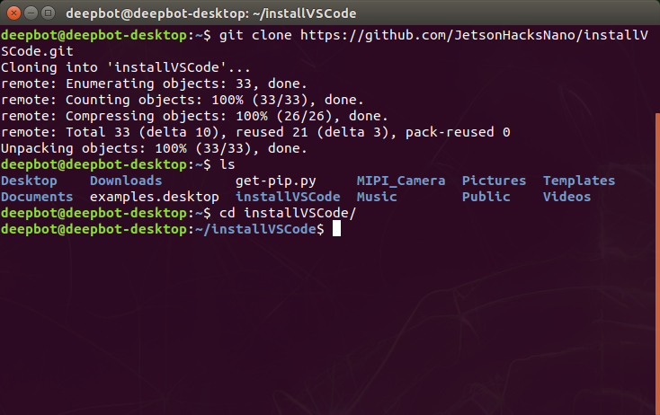 git clone https://github.com/JetsonHacksNano/installVSCode.git