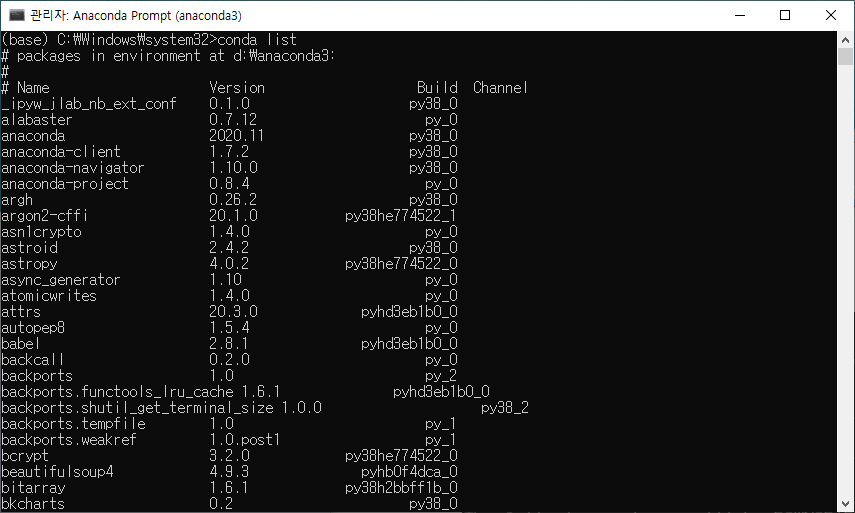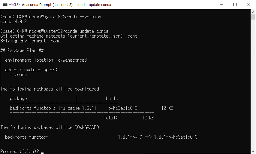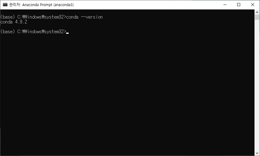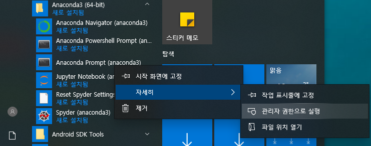 관리자 권한으로 Anaconda Prompt를 실행합니다.