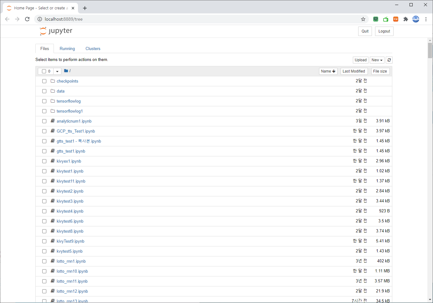 아래의 그림과 같이 jupyter Notebook이 실행됩니다.