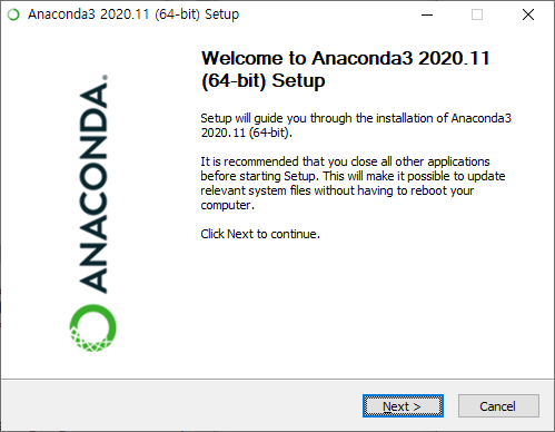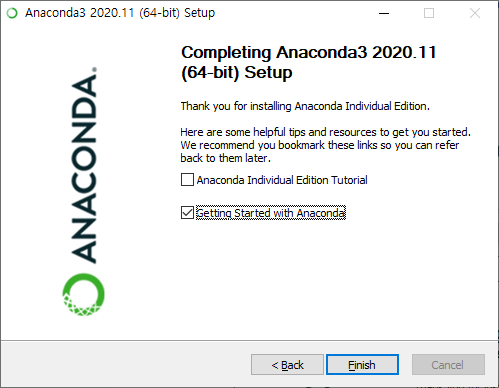 지금까지 Anaconda가 완료되었습니다.