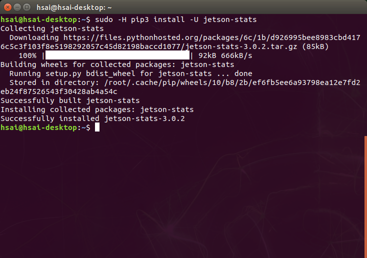아래의 명령어를 실행하여 jetson-stats를 설치합니다.