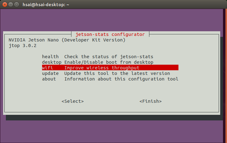 아래의 명령어를 실행하여 jetson nano 보드의 각종 설절을 수행할 수 있습니다.