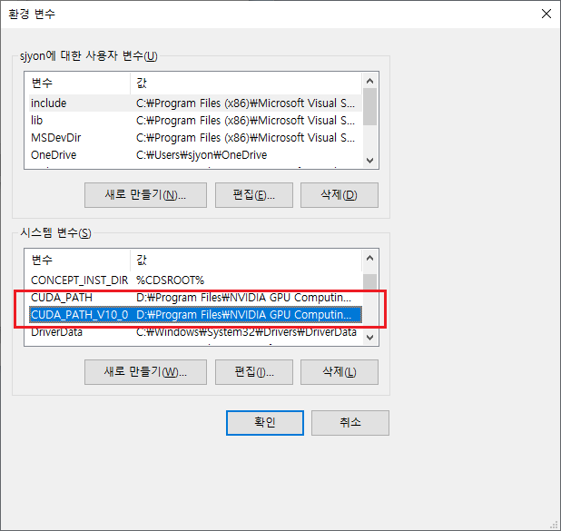 변수이름: CUDA_PATH