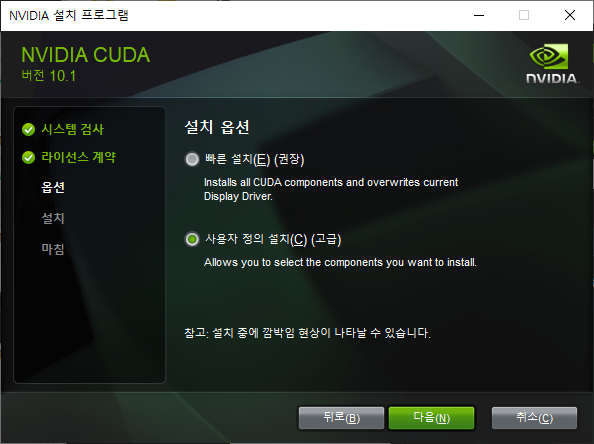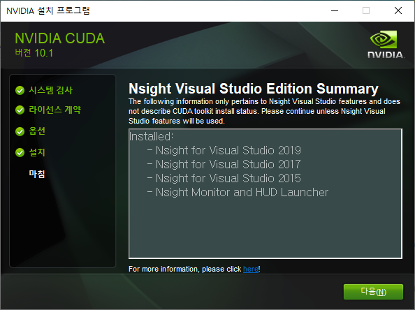 만약 비디오 카드의 드라이버가 이전 버전일 경우 소프트웨어 요구 사항의 NVIDIA GPU 드라이버 링크에 접속하여 업그레이드 할 수 있습니다.