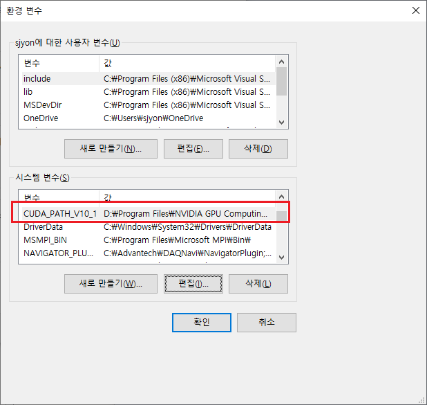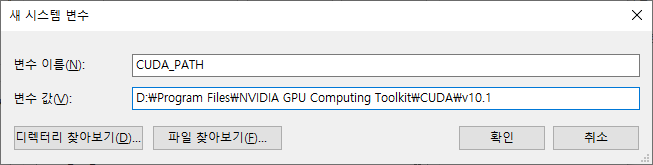 변수 값: C:\Program Files\NVIDIA GPU Computing Toolkit\CUDA\v10.1