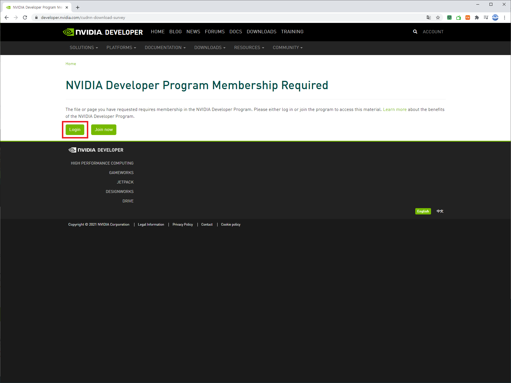 설치 파일을 다운로드하기 위해서는 NVidia 홈페이지 회원으로 가입해야 합니다. 회원가입을 하지 않으신 분들은 먼저 회원가입을 하고 위의 과정을 다시 반복해야 합니다. "Login" 버튼을 클릭합니다.