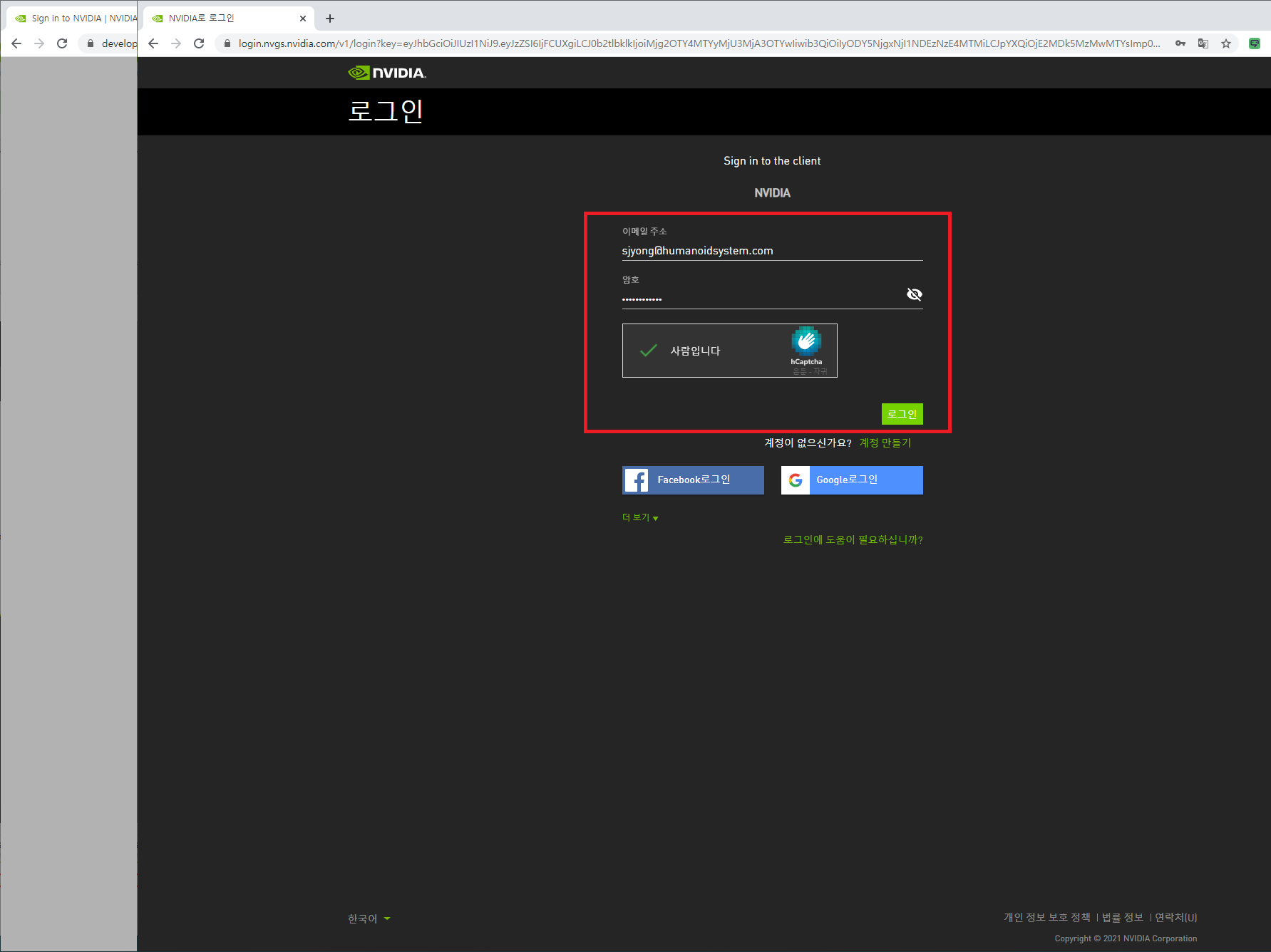 암호와 자동 입력 방지를 완성하고, "로그인" 버튼을 클릭합니다.