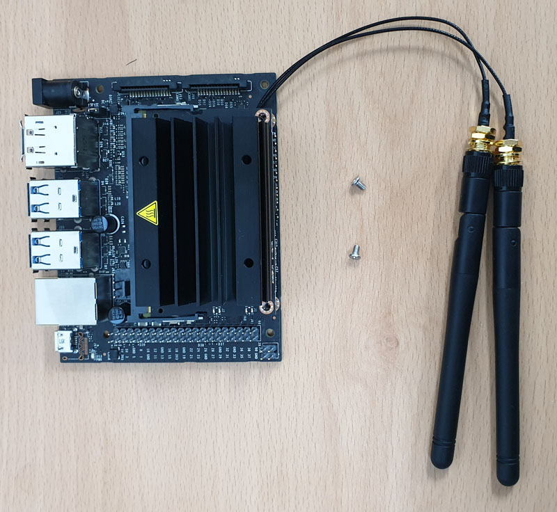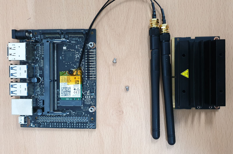 보드 슬롯에 WiFi 모듈을 장착하고 나사로 고정합니다.