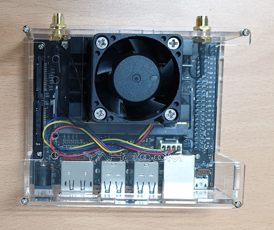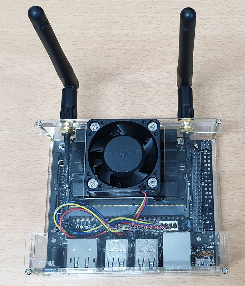 Jetson Nano 보드와 USB 타입의 카메라 모듈, WiFi 모듈, 아크릴 케이스(냉각팬 포함)가 도착했습니다.