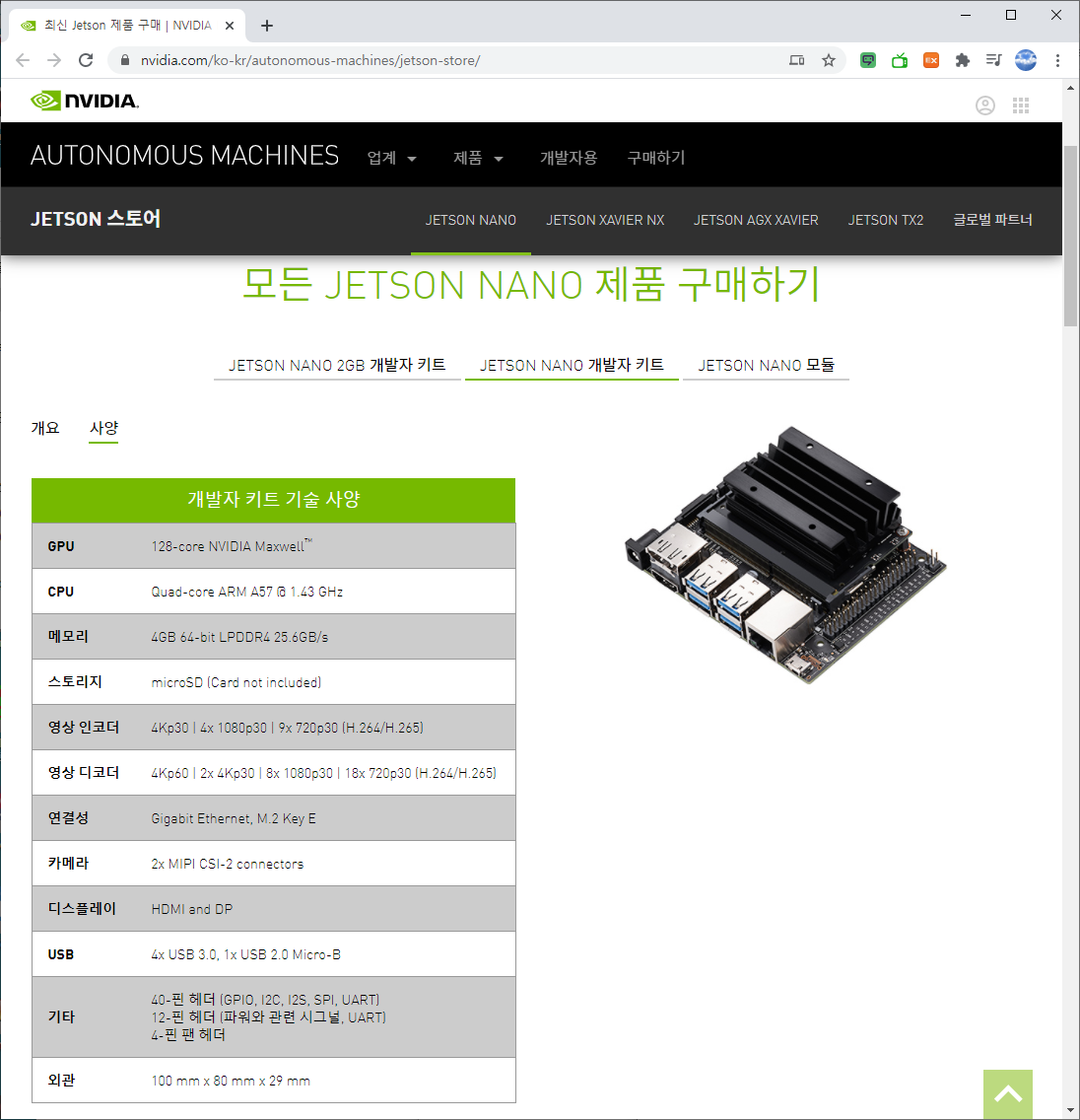 1. Jetson Nano 보드를 구매하기 전에 먼저 아래의 사이트에 접속하여 보드의 사양을 점검합니다.