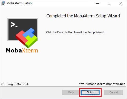 "Finish" 버튼을 클릭하여 설치를 완료합니다.