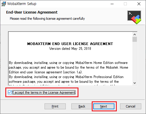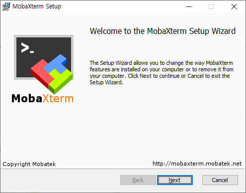 설치 파일의 압축을 해제하고, MobaXterm_installer_xx.x.msi 파일을 실행합니다. "Next" 버튼을 클릭합니다.