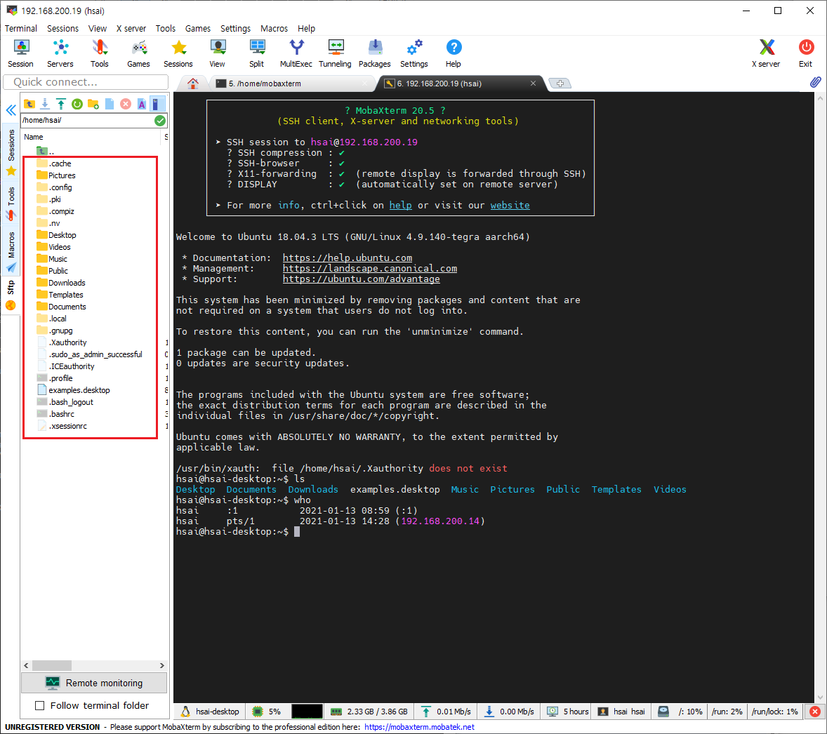 MobaXterm의 장점 중에 하나는 파일 복사와 이동이 편리하기 때문입니다.