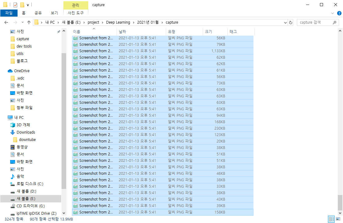 아래와 같이 해당 디렉터리의 파일 리스트가 출력됩니다. 여기에서 원하는 파일을 선택한 후 윈도우의 복사 대상인 폴더로 드래그하면 복사가 진행됩니다.