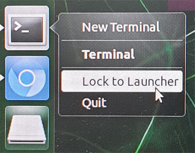 3. 좌측 바의 프로그램 Launcher에 자주 사용하는 프로그램을 등록할 경우, 프로그램을 실행하고 런처 바에 나타난 프로그램 아이콘에 마우스를 위치시키고 오른쪽 버튼을 클릭하여 "Lock to Launcher" 메뉴를 선택합니다.
