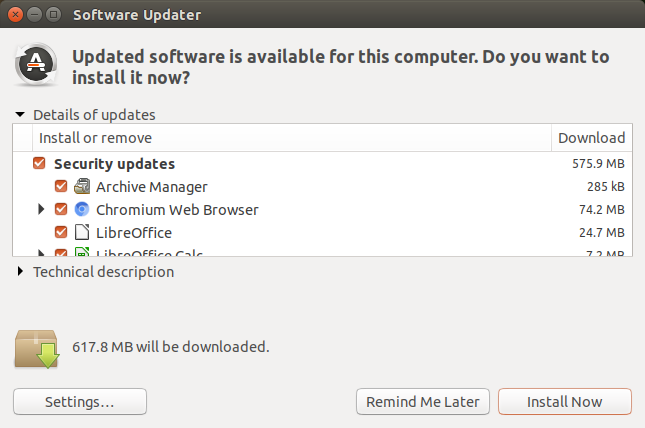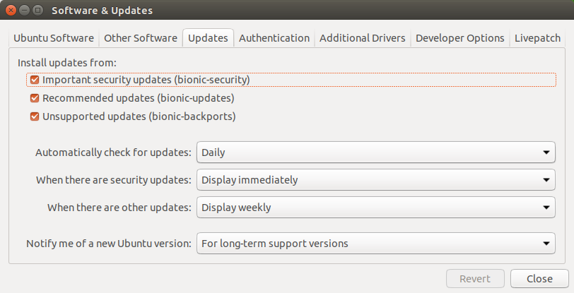 3. Software Updater 창이 나마타며 Ubuntu 18.04와 관련하여 릴리스 되어 있는 프로그램의 업데이드 창이 출력됩니다.