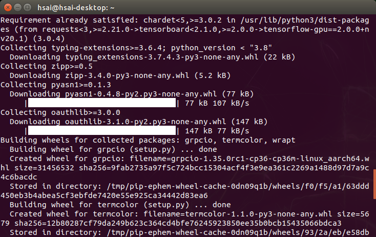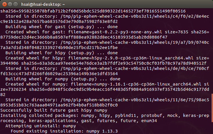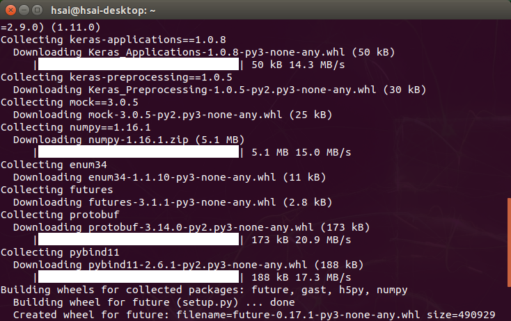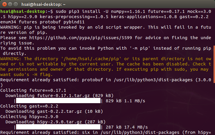sudo pip3 install -U numpy==1.16.1 future==0.18.2 mock==3.0.5 h5py==2.10.0 keras-preprocessing==1.1.1 keras-applications==1.0.8 gast==0.2.2 enum34 futures protobuf pybind11