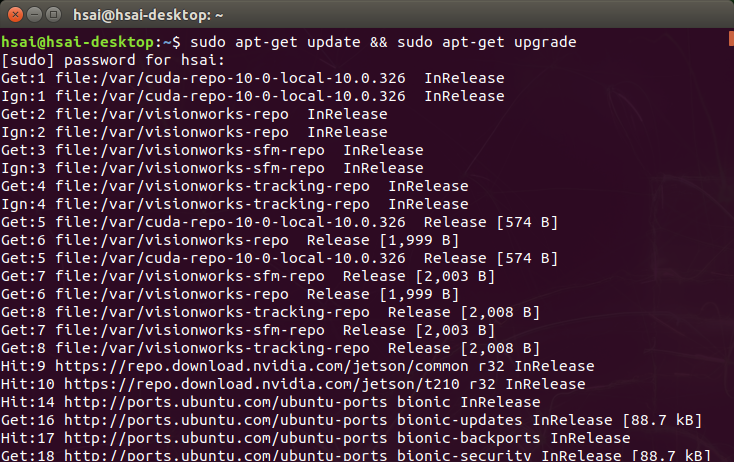 1. update 명령어를 사용하여 패키지의 리스트를 갱신하고, upgrade 명령어를 사용하여 패키지 리스트를 설치합니다.