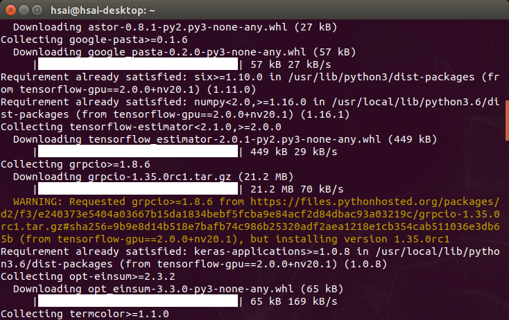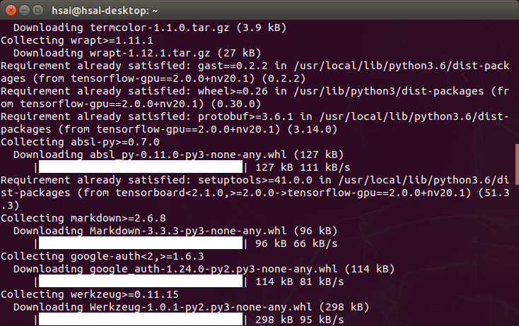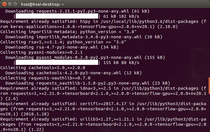 3. Tensorflow 설치에 필요한 각종 패키지들을 먼저 설치합니다.