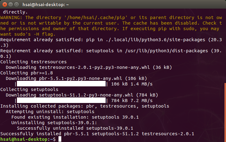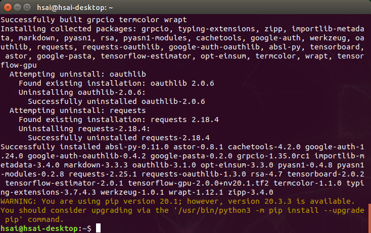 5. pip3 업그레이를 수행하고 패키지를 설치합니다.